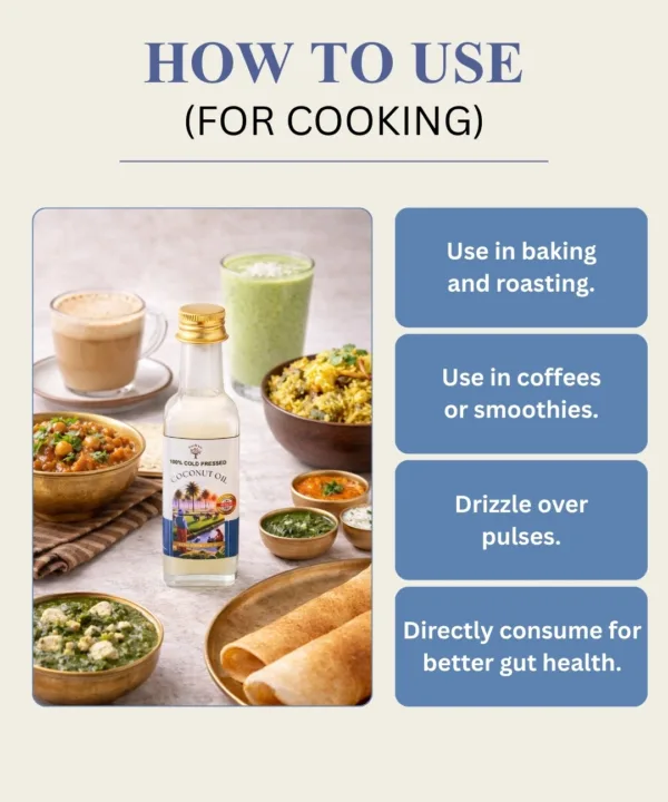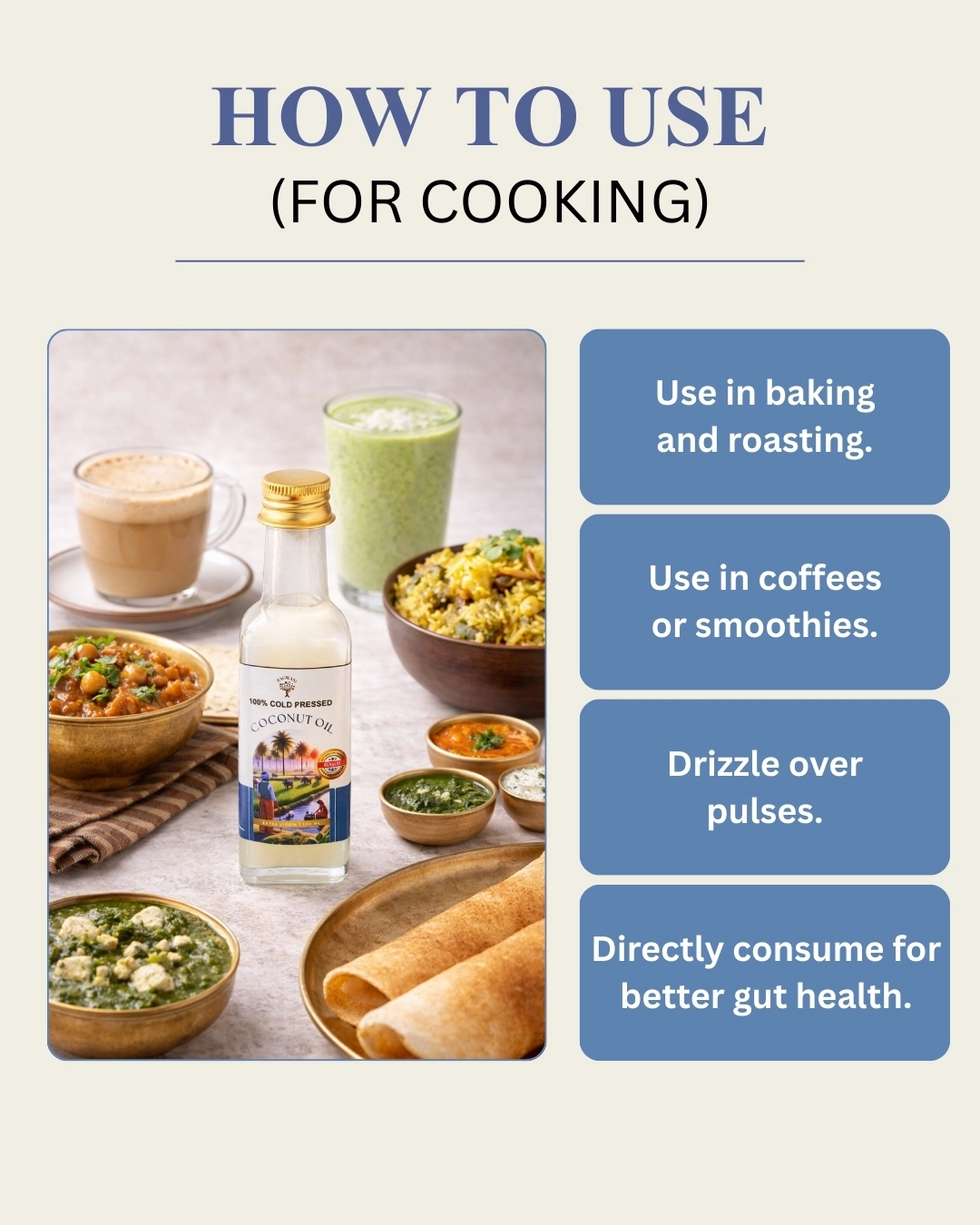 Baking: Substitute for butter or other oils in baking recipes to add a subtle coconut flavor and moisture.